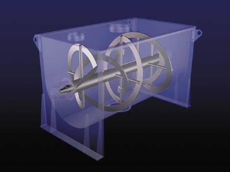 達到充分混合的目的,它有三種標準的攪拌設(shè)計一連續(xù)式螺帶、打斷式螺帶和漿葉,分別根據(jù)中心或底部出料的要求來進行選擇