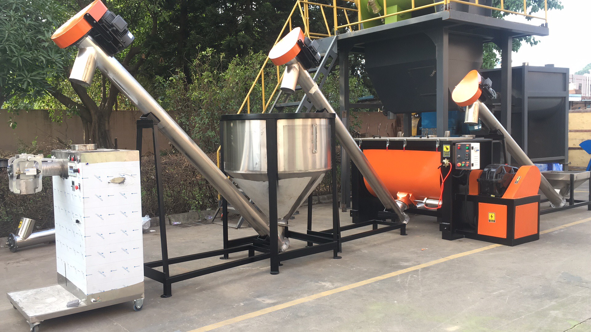 用于生產線料倉中的物料輸送方式有:水平輸送和垂直輸送,水平輸送可使用螺旋輸送機,垂直輸送一般采用斗式提升機,也可采用電動提升機。