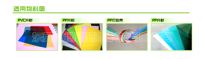 可用于塑料編絲、編織袋、塑料網繩、薄膜、片材、塑料板材、塑料管子等物料的粉碎,可破碎尼龍、樹脂、PVC、TPR、聚丙聚乙、高低壓聚碳、橡膠等塑料。